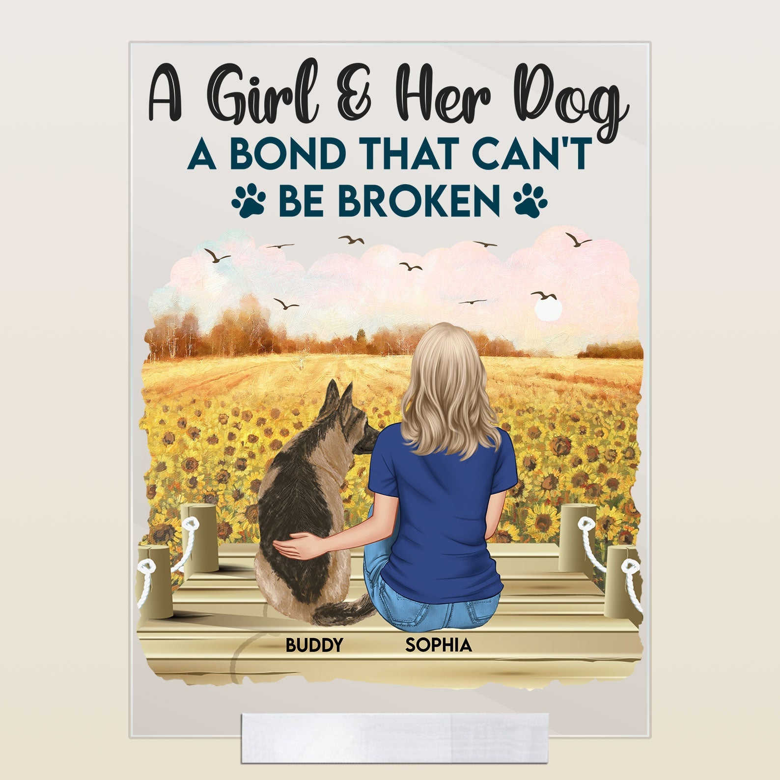 Celebrate your furry best friend with a custom acrylic plaque featuring your dog’s name in a fun, artistic font. This unique wall art makes a heartfelt gift for any dog lover. It makes a thoughtful gift for dog owners on birthdays, holidays or “Gotcha Days.” You’ll smile each time you see your pup’s name artfully displayed. For dog lovers who have everything, a custom acrylic plaque is the paw-fect unique gift. There’s no better way to celebrate your canine companion than with custom wall art engraved with their name. This personalized plaque will remind you daily of your dog’s unconditional love and become a treasured keepsake for years. Surprise your favorite dog parent with custom art honoring their loyal companion.