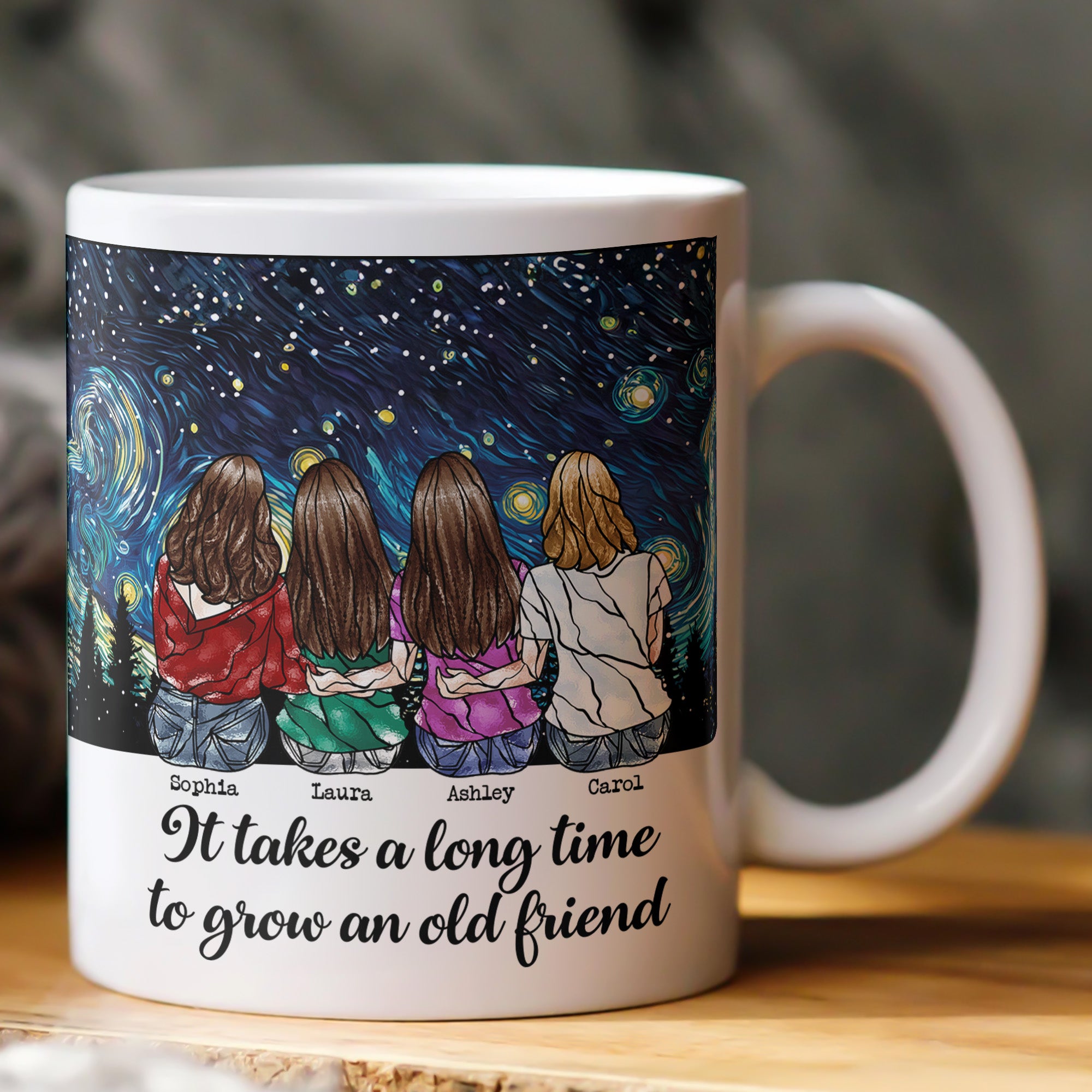 The use of this mug goes beyond just sipping your favorite beverage; it brings warmth and cherished memories with each use, a daily reminder of an enduring friendship. It’s best suited for that old friend who values the depth and length of your friendship and finds joy in those simple heartfelt gifts. So, why wait? Add this heart-tugging, personalized mug to your cart, and celebrate the beauty of long, lasting friendships every day.