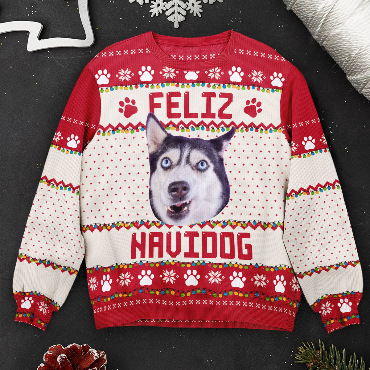 Celebrate the holidays with a hilarious twist! Our Upload Big Pet Faces Funny Christmas Ugly Sweater is perfect for dog and cat lovers looking to make a statement at any Christmas ugly sweater party. Personalize this cozy sweater with a funny photo of your pet to create a one-of-a-kind gift for friends, coworkers, and family. Ideal for pet lovers, it’s the ultimate custom outfit for spreading festive cheer. Make your Christmas unforgettable with a sweater that’s sure to spark laughter and joy!